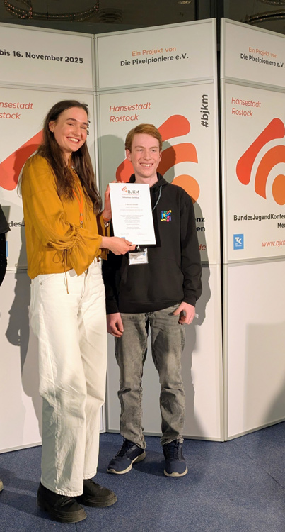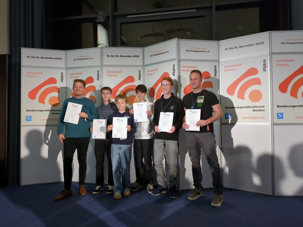 20.11.2025 – Im Rahmen der neuen Medienmentorenausbildung an der aim durften vier unserer Schülerinnen und Schüler an der Bundesjugendkonferenz Medien (BJKM) in Rostock teilnehmen.